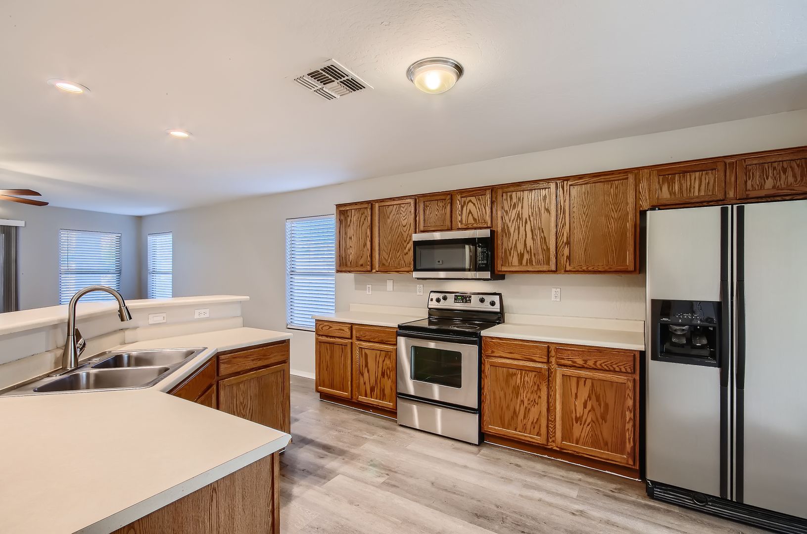 This one is fresh, clean and move-in ready! This beautiful 4 bed 2 bath single-story home is located close to shopping and quick freeway access. The open floorplan provides an abundance of natural light with an airy feeling throughout. The kitchen is open and inviting featuring new granite countertops and a huge center island with stainless steel appliances.