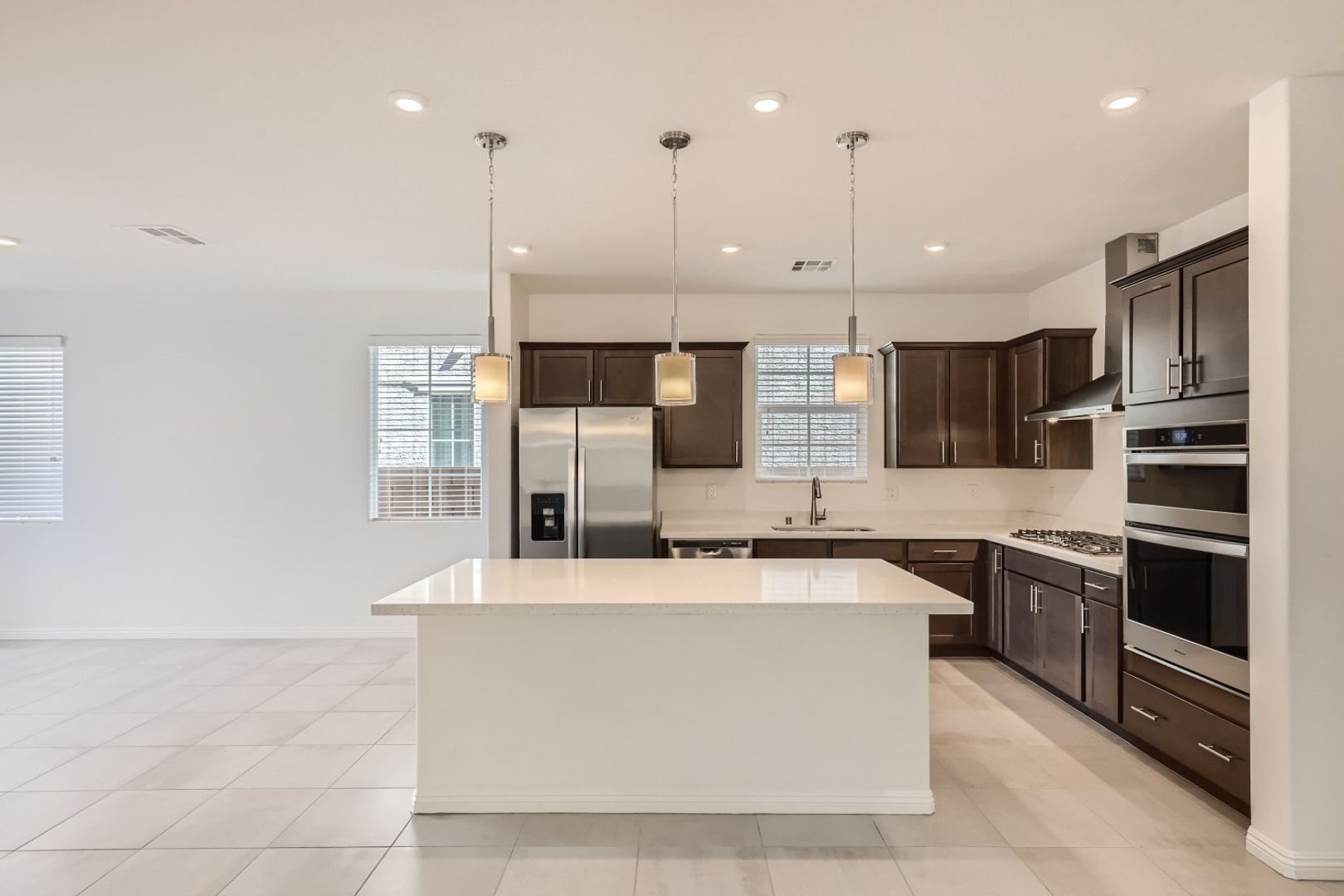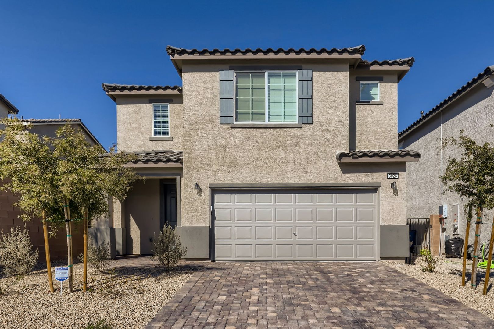 Spacious 4-bedroom, 3-bathroom home near E. Centennial Parkway & Losee Road! With 2,520 sq. ft., this modern two-story is perfect! Low-maintenance landscaping, two car garage, and the driveway features brick pavers. Tile flooring throughout first floor. Custom cabinets in kitchen, recessed lighting, island and stainless-steel appliances. Washer and dryer hook up. Bedroom on first floor. Large primary bedroom with ensuite bathroom that has dual sinks, garden tub and walk in shower.