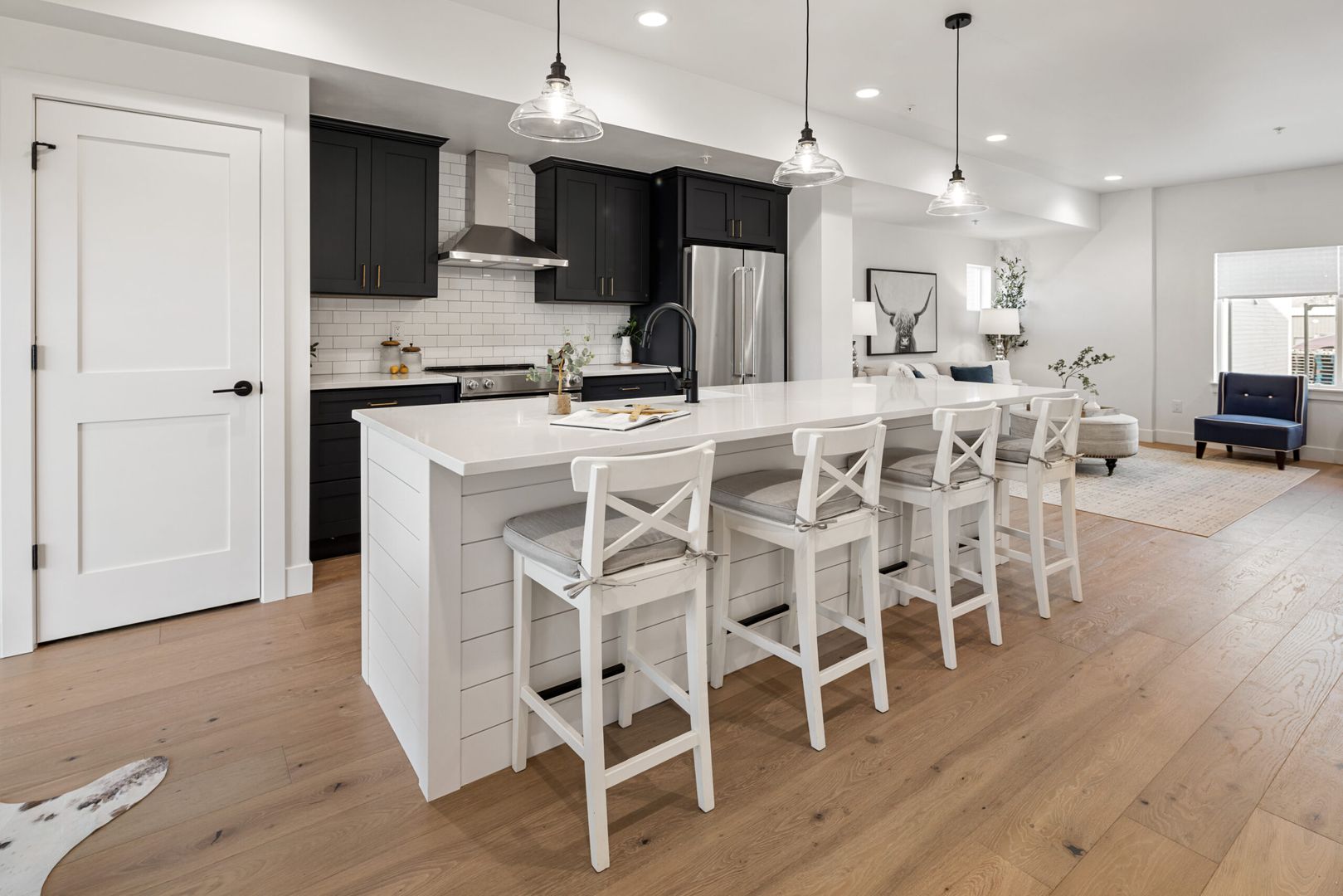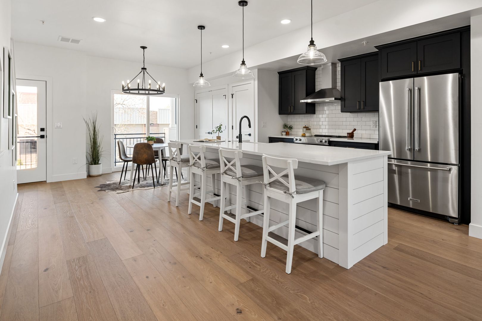 • Brand-new modern farmhouse–style three-story townhomes