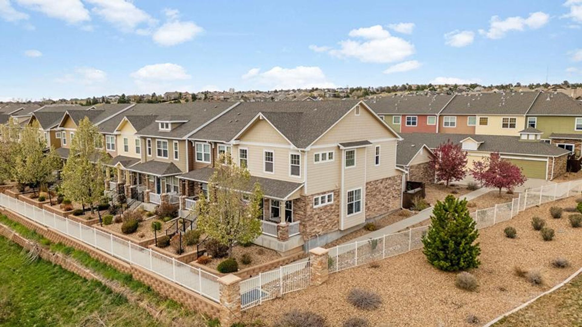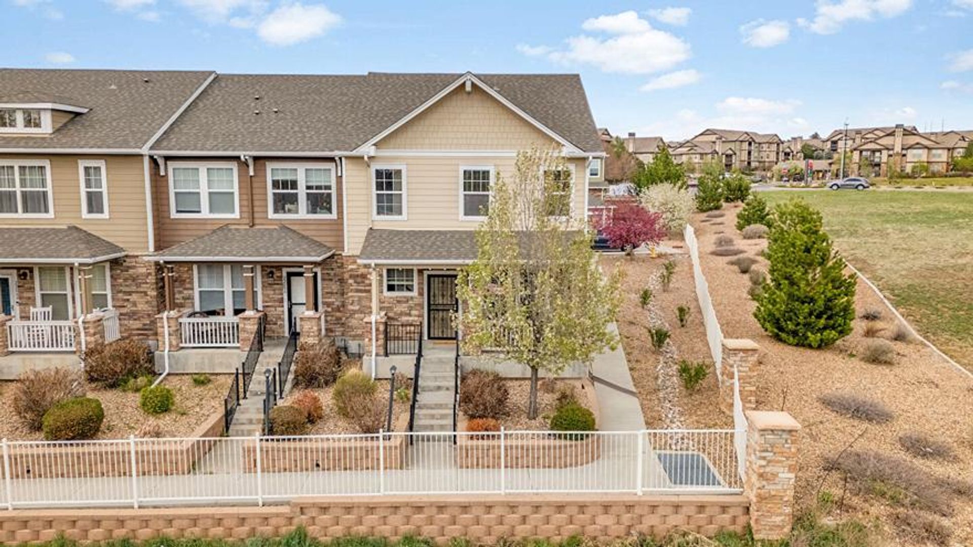 Welcome to your dream home at 22898 E. Ottawa, a stunning end unit located on a spacious corner lot that offers serene open space views on two sides. This quiet and private residence boasts 1,857 sqft of thoughtfully designed living space, featuring 3 bedrooms and 3 bathrooms, perfect for comfortable living and entertaining. As you approach the home, you'll be greeted by mature trees and a picturesque creek bed in the front, creating a tranquil atmosphere. Inside, you'll find a bright and airy layout filled with natural light, highlighting the beautiful finishes throughout. The gourmet kitchen is a chef's delight, showcasing elegant granite countertops and gorgeous cabinetry centered on a large island. Step outside to enjoy your private front and back patios, complete with composite decking—ideal for relaxing or hosting gatherings. The luxurious primary suite includes double closets and a spa-like 5-piece bathroom, providing a perfect retreat at the end of the day.