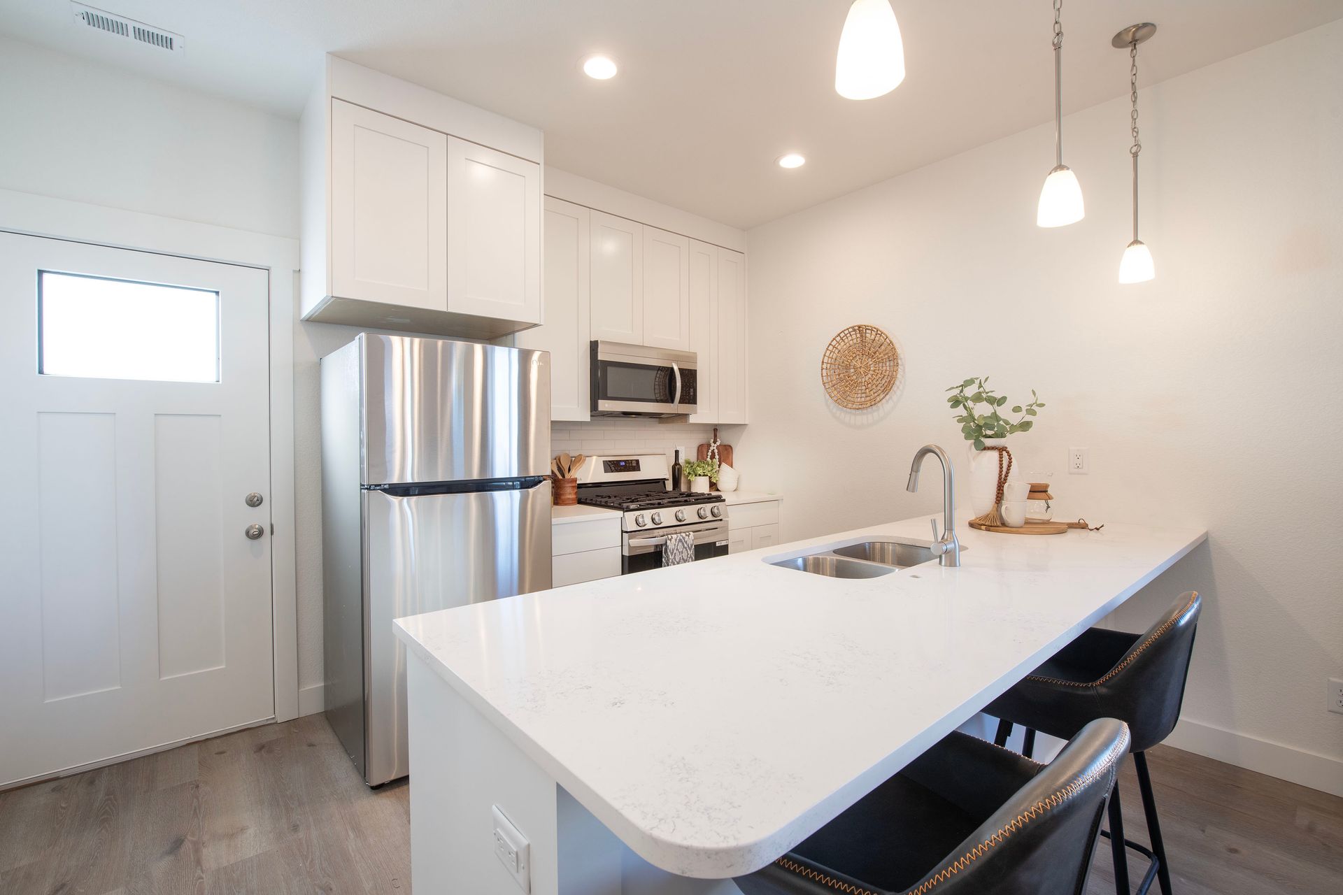 Be the first to call one of these stunning brand-new two-story homes your own in the vibrant new community of Verde Commons. Thoughtfully designed with a focus on style and functionality, these homes have never been rented before and are ready to offer a fresh start in a modern, welcoming space. Step inside to find an open-concept layout filled with natural light pouring in through large windows, highlighting the beauty of the hardwood flooring throughout. The contemporary kitchen boasts new stainless steel appliances, granite countertops, and ample space for cooking and entertaining. Each home features washer and dryer hookups, a one-car garage, and all the modern finishes you expect in a new build. With clean lines, modern design, and a location in a growing neighborhood, Verde Commons offers the perfect blend of comfort, style, and community. Whether you're starting fresh or simply upgrading your lifestyle, Verde Commons is the place to be.