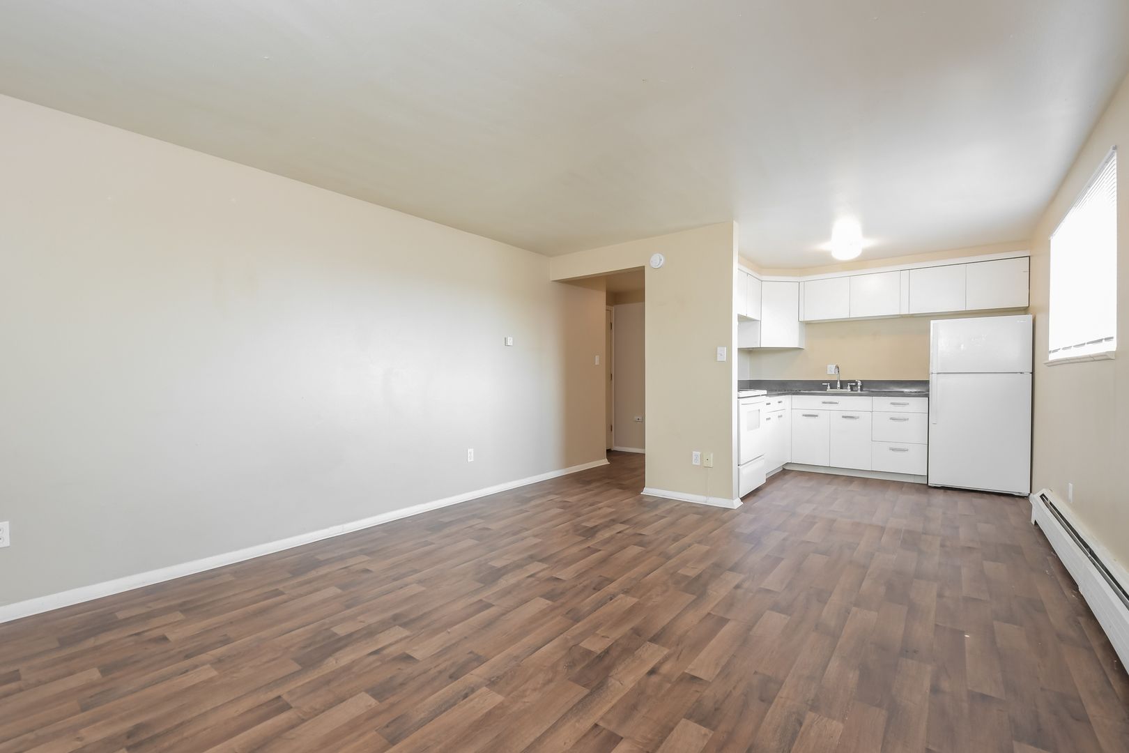 This wonderful 1 bed 1 bath second story unit located in a quiet cul-de-sac at 1675 Upham Street, Lakewood, CO is move-in ready NOW!. With approximately 625 sq. ft. of floor space, Unit #7 provides a large open floor plan with ample lighting in each room and beautiful vinyl plank flooring. Notable with unit #7 is a flex/bonus room adjacent to the living room perfect for an office, play room, or extra storage. Parking is available off-street and washer dryer are onsite in a community laundry room.